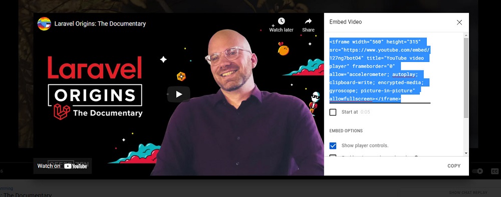 A new tab will open, then select embed and copy embed code in opened modal.