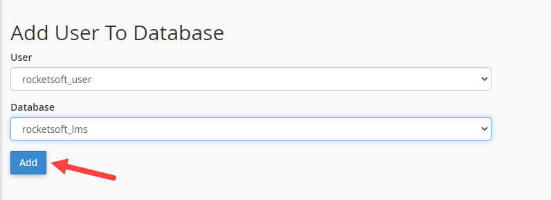 Now you should assign the user to the create database. Select the created database and the related user and click on the “Add” button. This process might be done automatically on some control panels such as “Direct Admin”.
